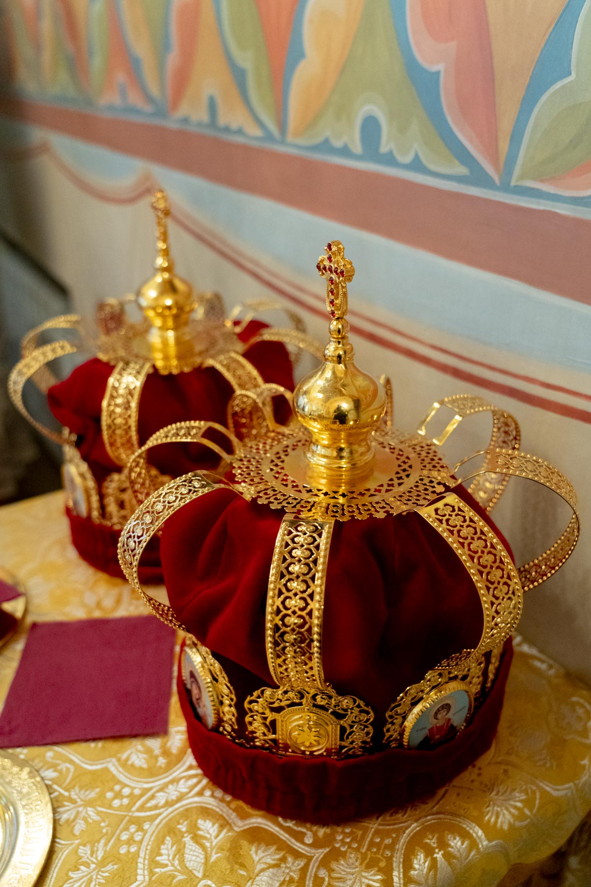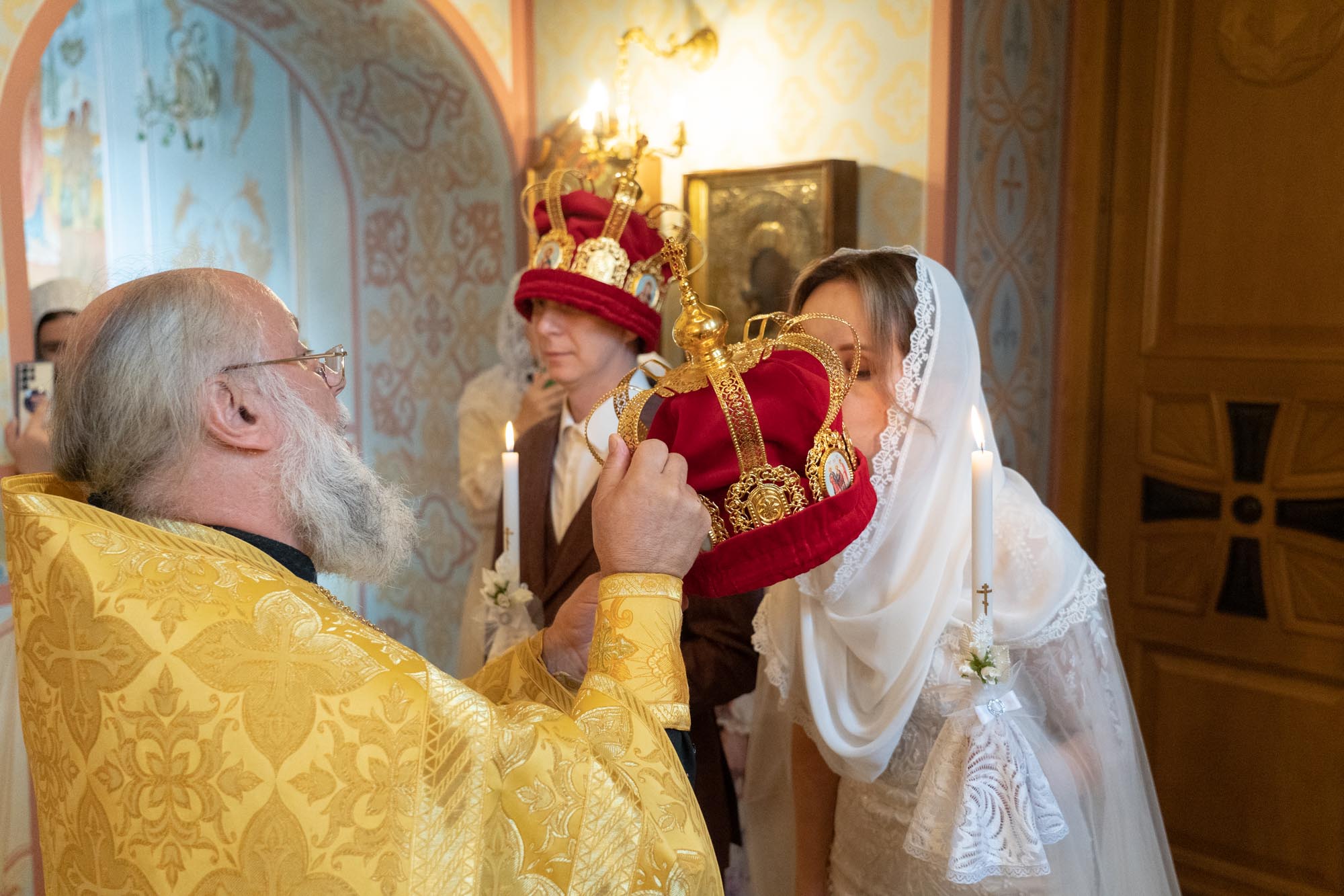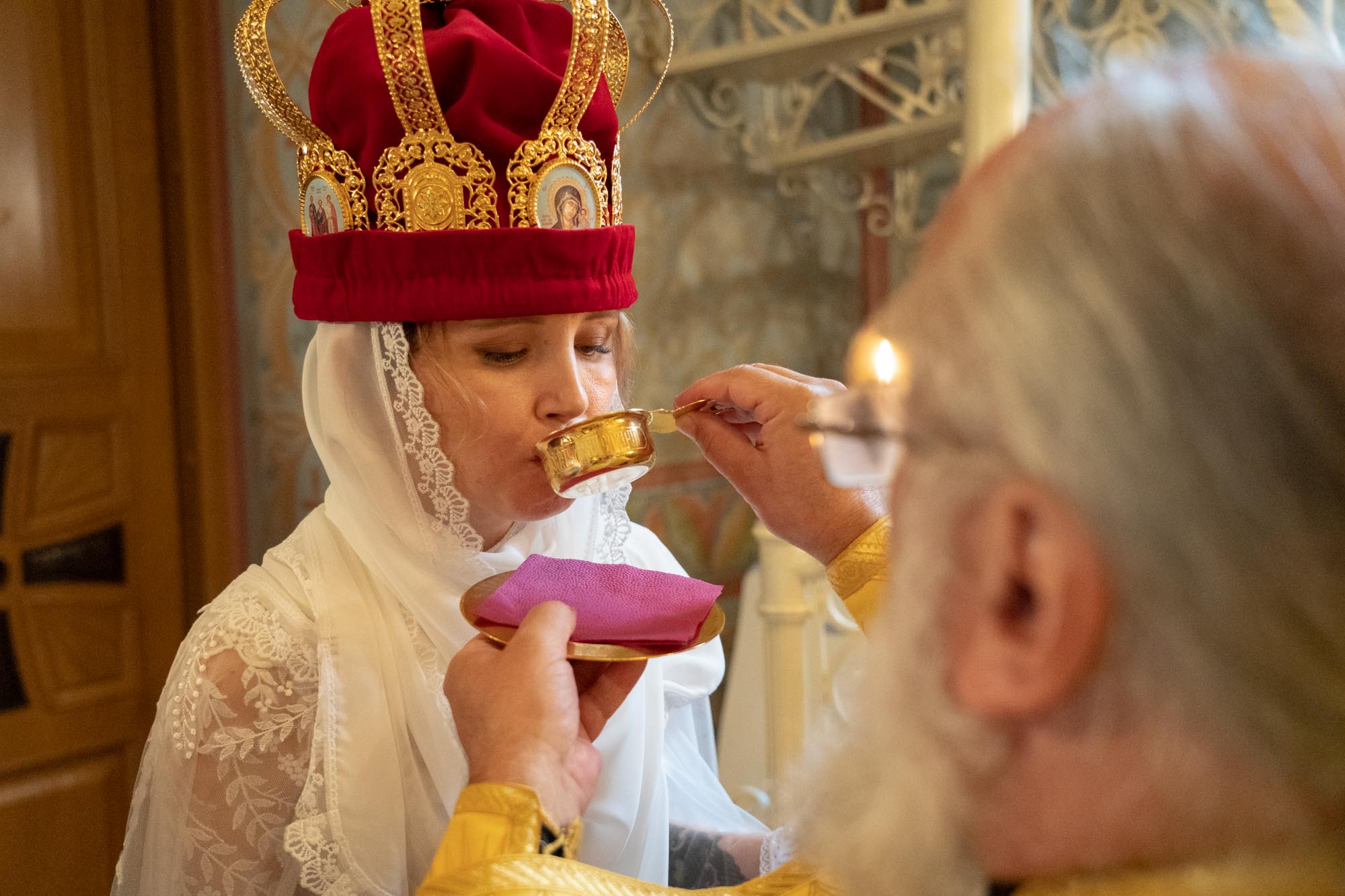 В один из самых торжественных моментов Венчания поется песнопение, посвященное святым мученикам. На головы молодым налагаются венцы, а потом они снимаются. Такого нет ни в одном другом таинстве. Венцы снимаются, и супруги теперь должны их заслужить, терпя немощи друг друга, бок о бок шествуя по пути спасения, чтобы Сам Господь наградил их вечными венцами в Небесном Царстве.