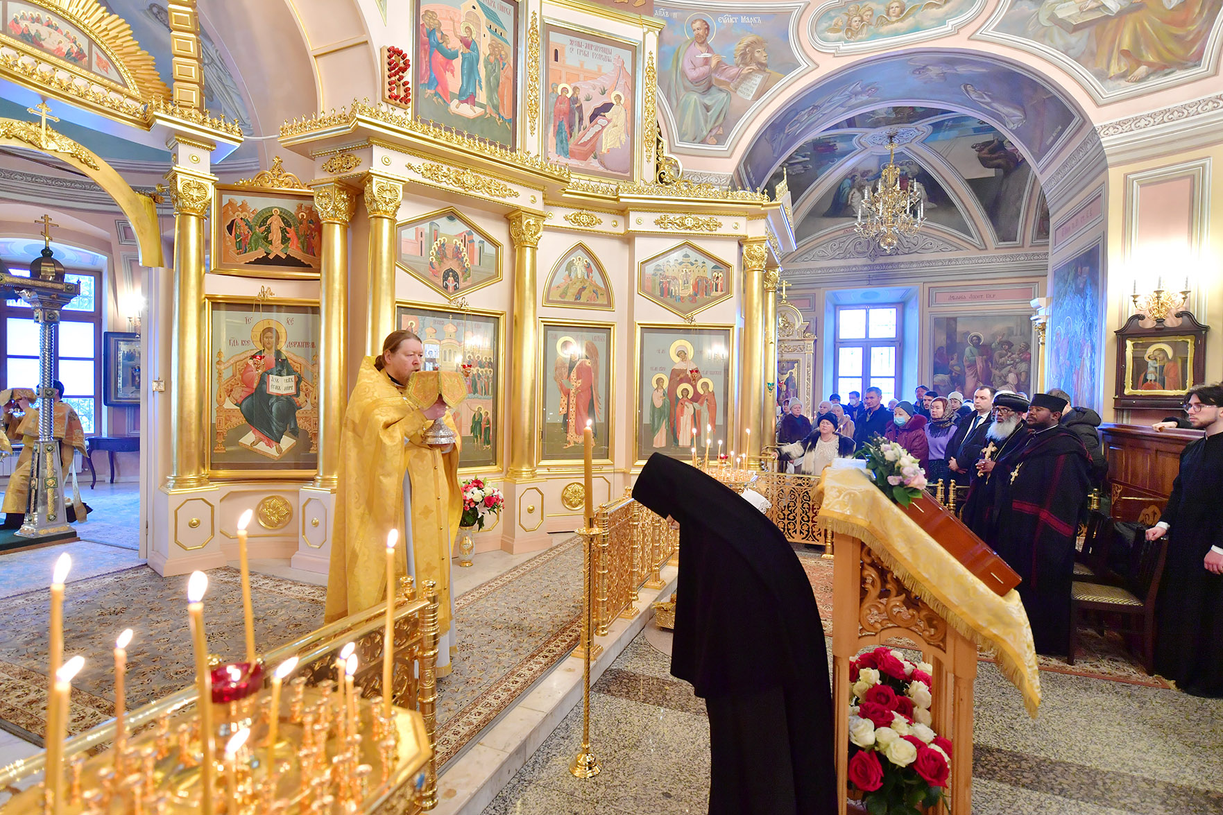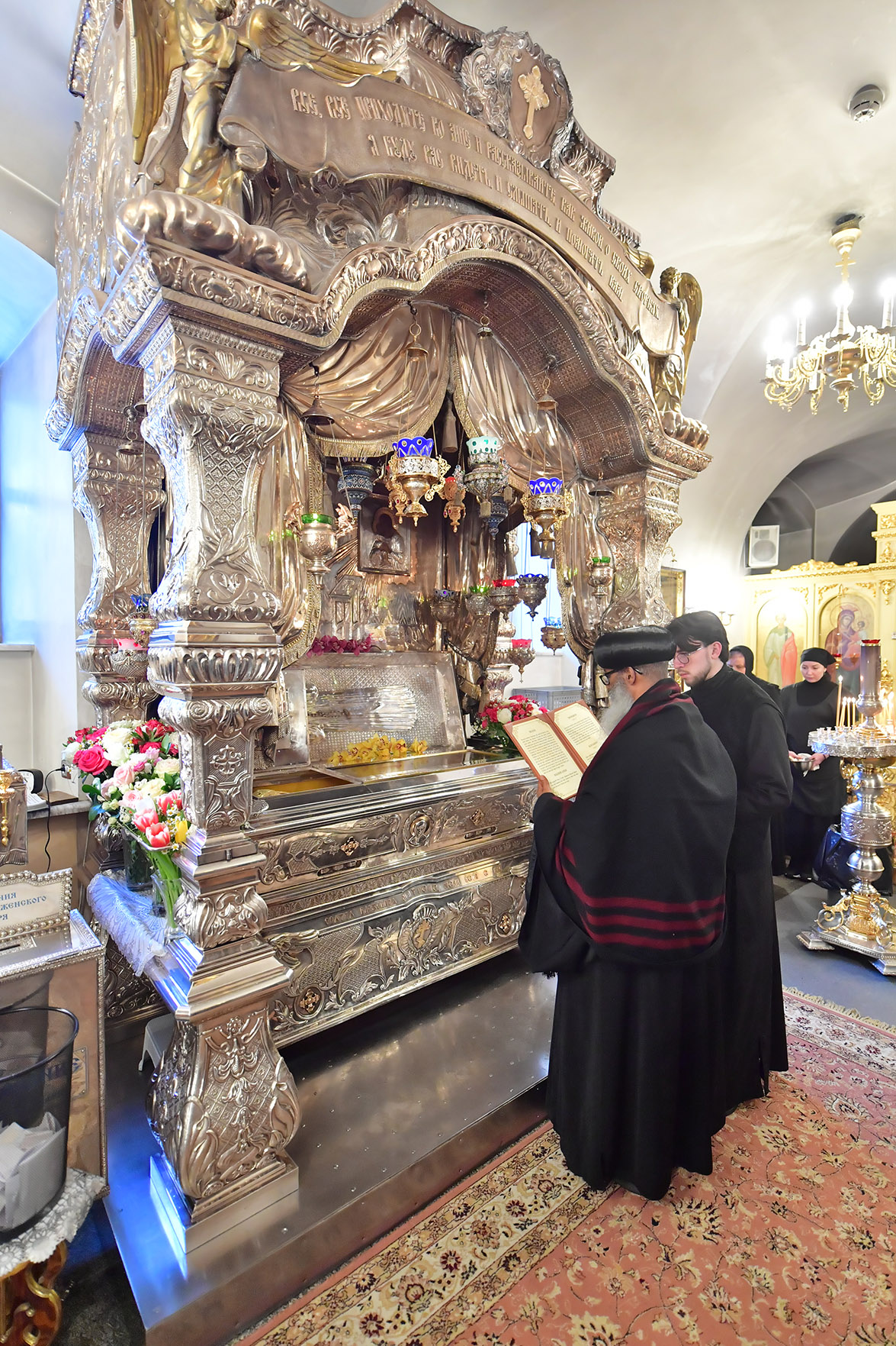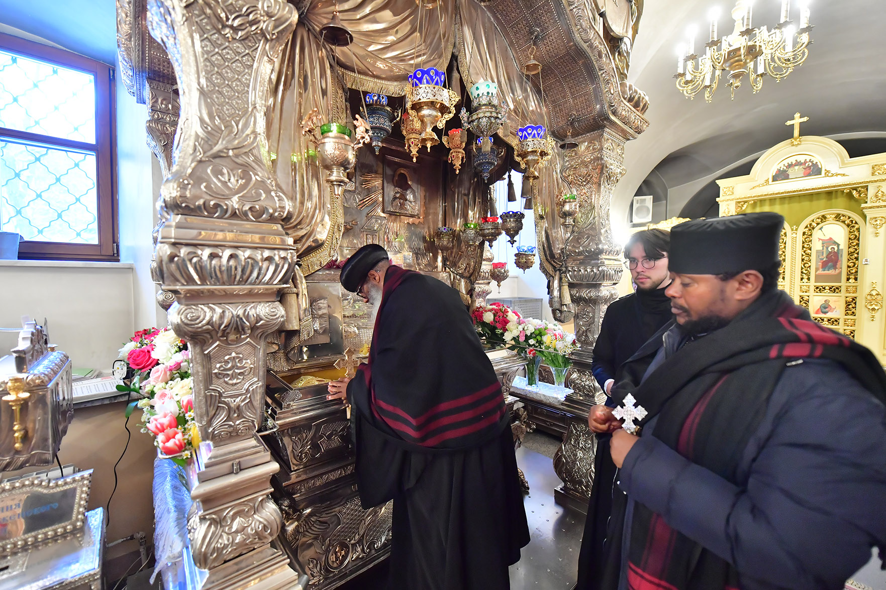 12 февраля участники церковной делегации молились у мощей блаженной Матроны Московской и за монастырским богослужением.