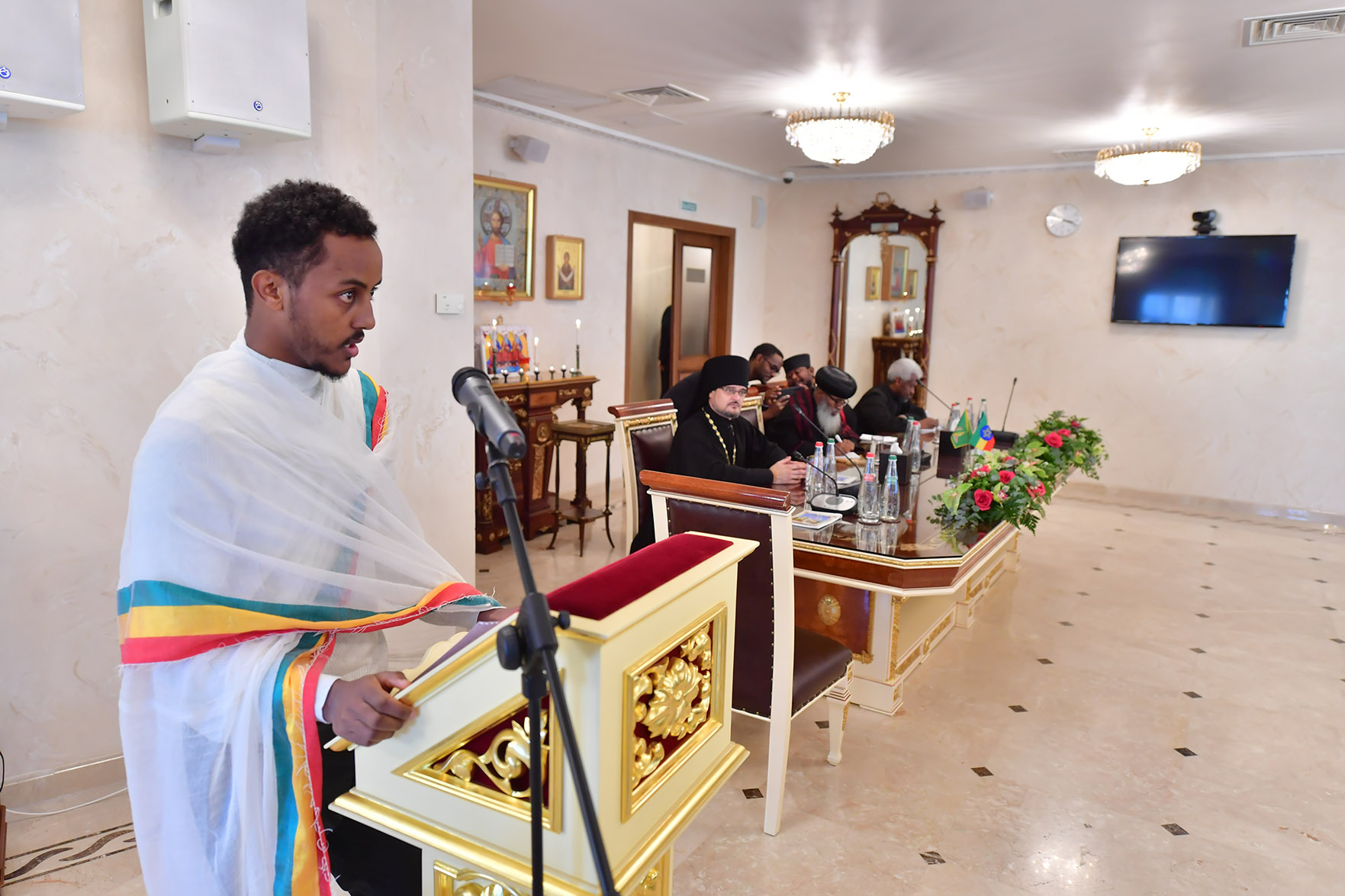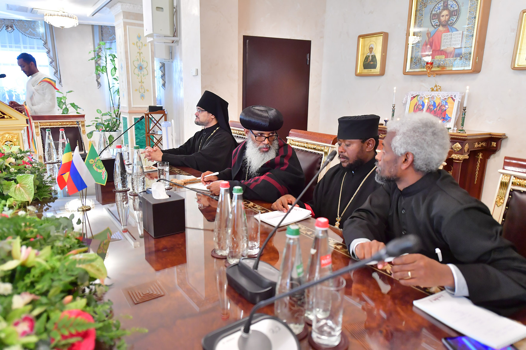 В составе участников прибывшей делегации: архиепископ Южного Омо Абуна Филипос – ректор Свято-Троицкой богословской академии в Аддис-Абебе, сопредседатель Комиссии; священник Даниэль Сейфемихаэл – руководитель Департамента внешних связей Эфиопской Церкви, генеральный директор Вещательной корпорации Эфиопской Патриархии, секретарь Комиссии; священник Уэлдеиесус Сефугалато – заместитель управляющего делами Эфиопской Церкви, благочинный приходов Аддис-Абебы.