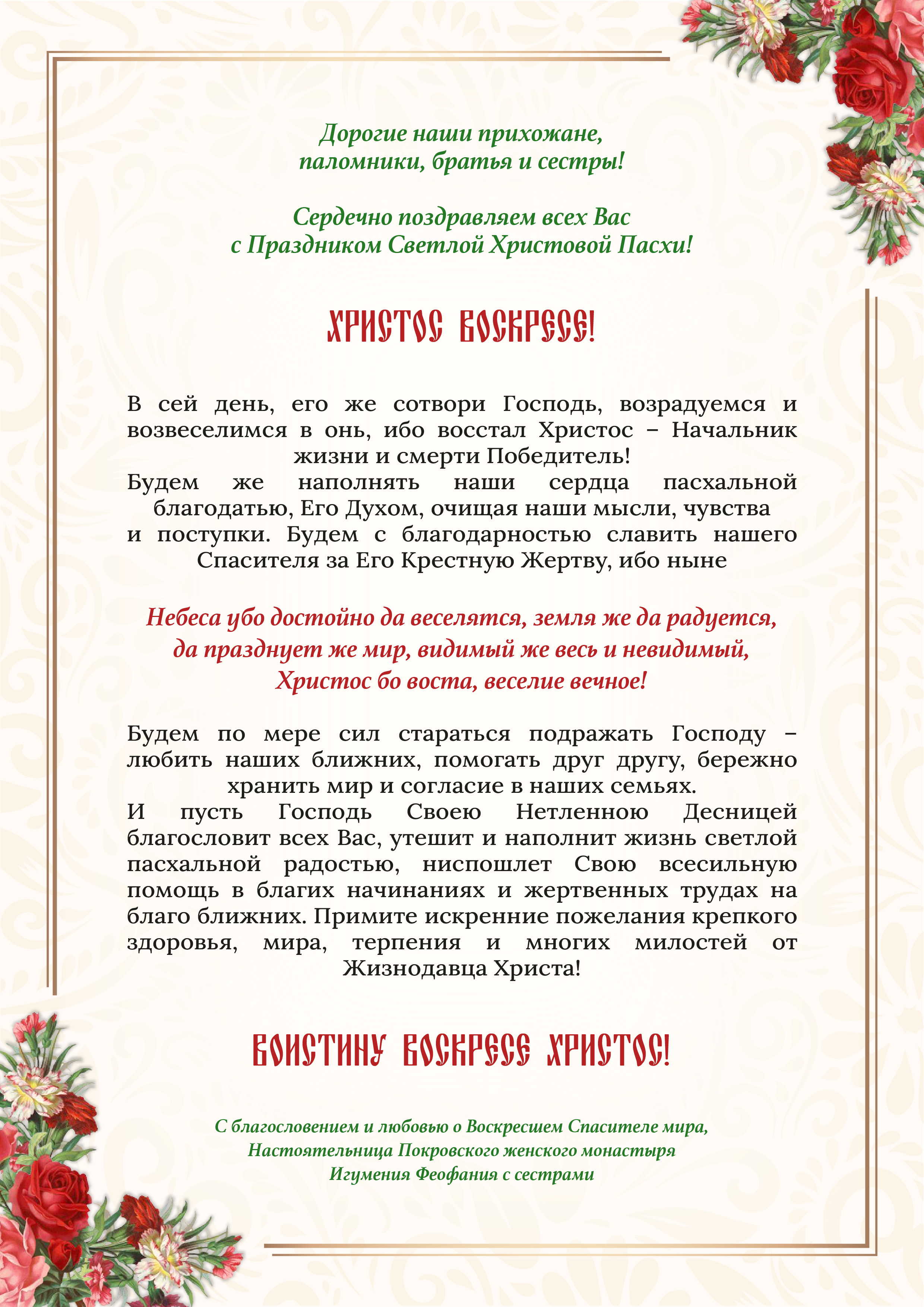 Поздравление с праздником Пасхи от игумении Феофании