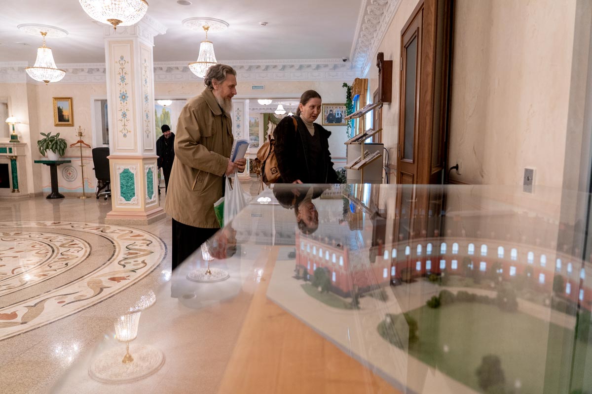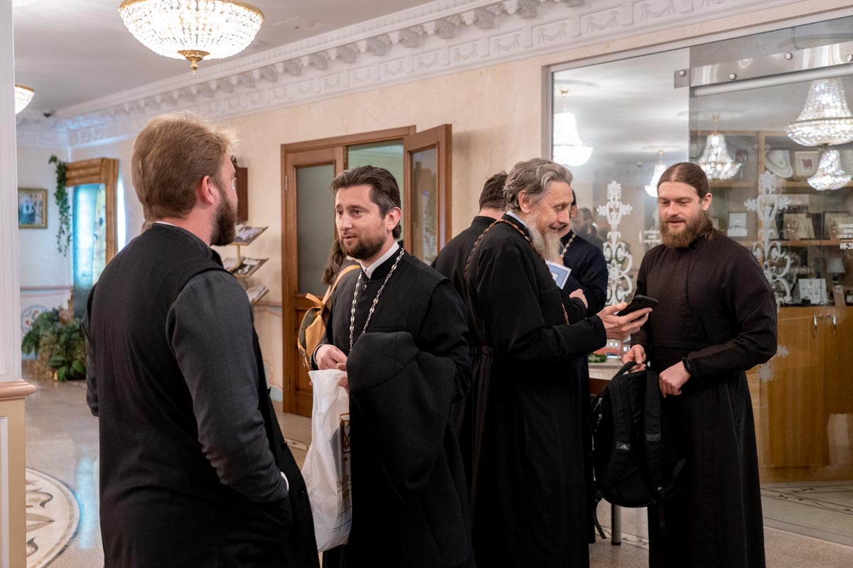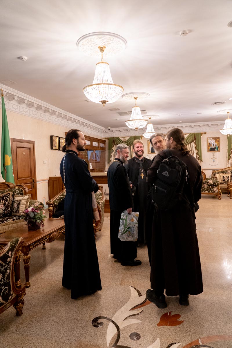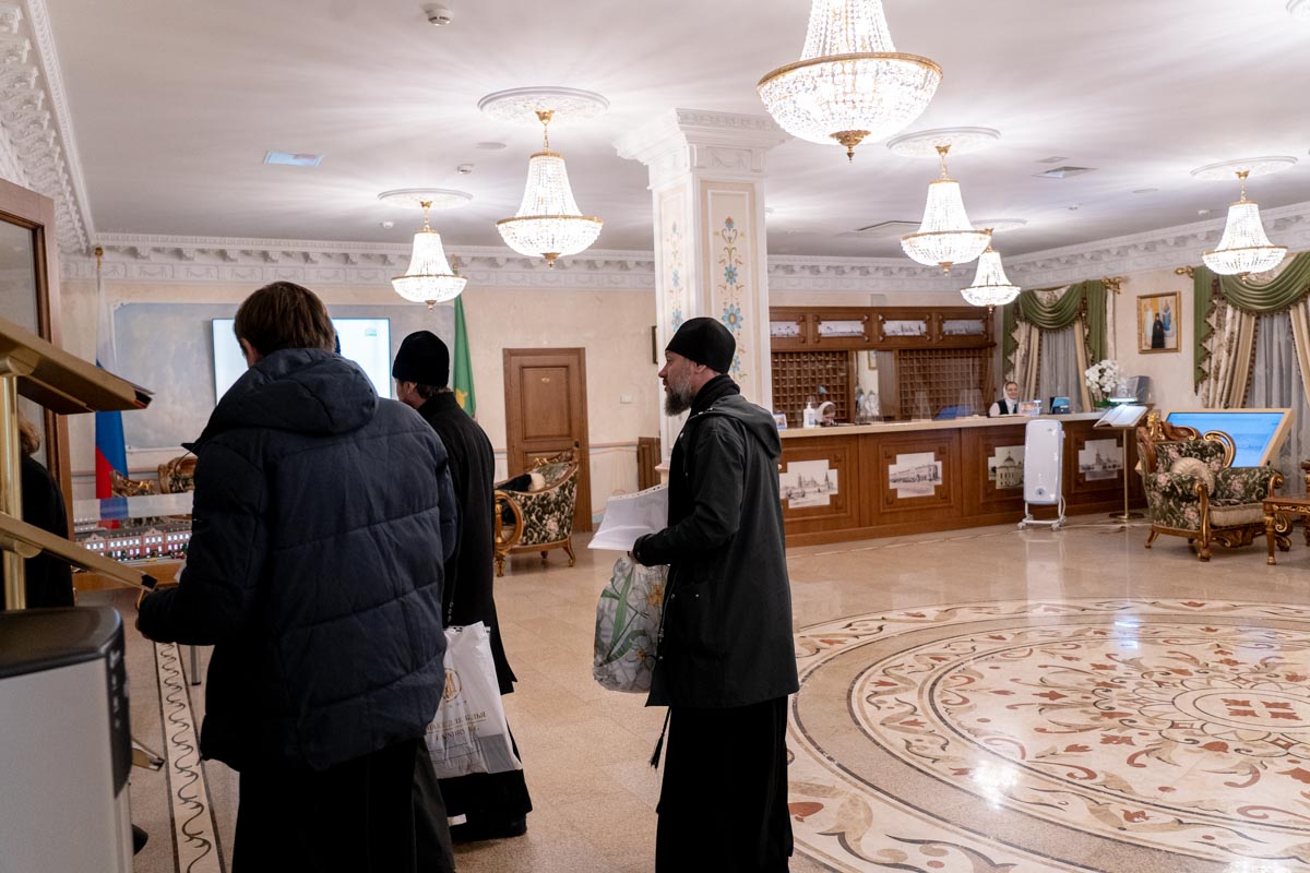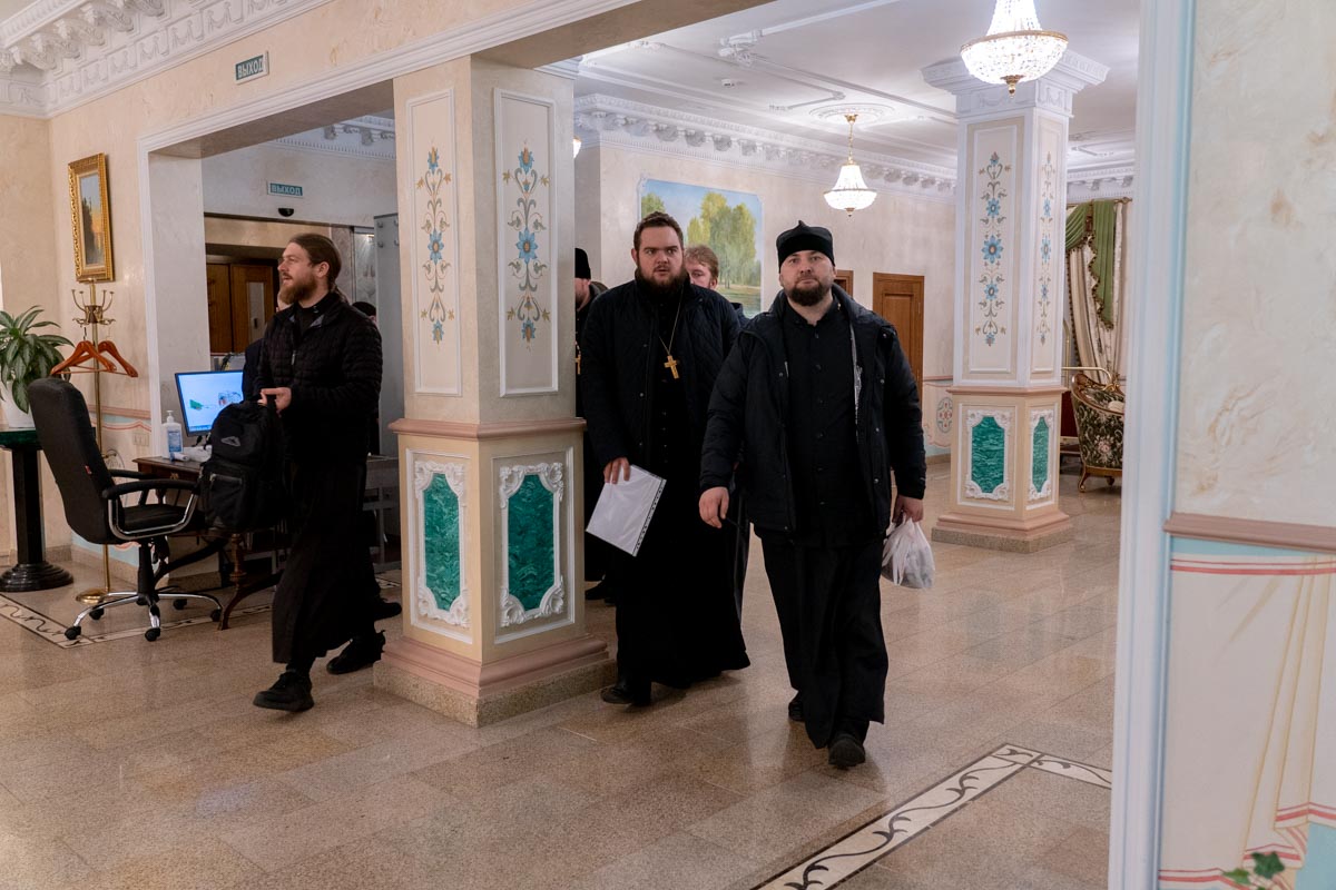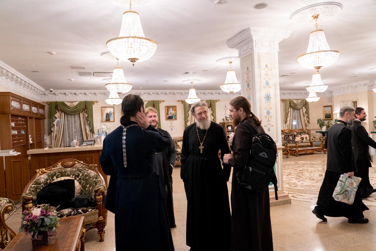 В гостиницу Покровская принимает в своих стенах руководителей епархильных социальных отделов. Батюшки ежедневные собрания проводят в одной из переговорных гостиницы.